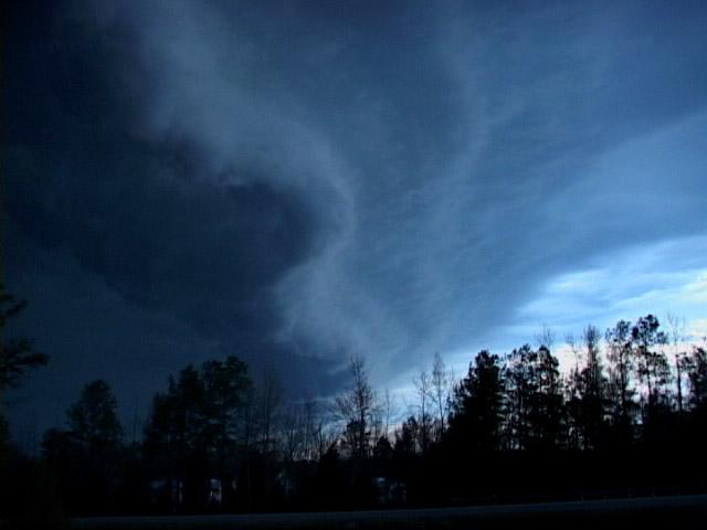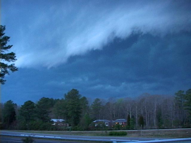 I left work at approximately 2:30PM and headed south on I-95 toward my initial target of Rocky Mount, NC. Dewpoints were increasing and winds were from the southeast across the entire area. There was nice clearing after the inital round of storms. The best predicted helicities were near Wilmington, NC (too far to reach) but they would be more than sufficient in the target area. A MCD was issued for southern Virginia and North Carolina detailing the potential for tornadic supercells. A tornado watch was later issued for most of Virginia and North Carolina. Everything was looking good. I stopped to get gas and check data in Emporia, Virginia. Winds were still backed but were starting to veer well ahead of storms forming over the mountains. Initally, the best parameters were near Emporia and I decided to stay. I met up with Bill Coyle and Jesse Bass III in a Burger King parking lot, and we watched WX Worx and checked data. The storms to the west rapidly intensified but quickly became a solid line. There was a slight decrease in local dewpoints and surface winds across the entire region except for the Emporia to Richmond line veered. I was a bit concerned about more isolated storms firing just southwest of Greensville, NC. By the time the SPC mesoanalysis showed a CAPE and Supercell Index bullseye over that area, it was too late to adjust my position. The surface winds in that area also had veered, and I felt tornadic potential was too low to justify a vain attempt to catch those isolated storms. They did look briefly nice on XM, probably the only true supercells in the region. As darkness approached, I headed north on I-95 to at least watch a squall line. Bill and Jesse also headed north. The chase was over for tornadic potential. The squall line was mildly interesting with some nice lightning. Unfortunately, best show was in my home town of Richmond with beautiful sunlit storm clouds and double rainbows. At least I didn't miss any tornadoes as there were no warning or tornado reports in the entire region despite the Moderate Risk and tornado watch boxes.