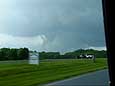 I was able to leave work at approximately 4:30PM. Richmond was in the center of a tornado watch box that covered central and eastern Virginia. A north-south line of storms was already forming near Charlottesville and slowly moving eastward while individual cells were moving to the northeast. There were scattered showers across central Virginia. The warm front was across central Virginia and this would be the most likely focus of tornadic development. I had planned to wait just north of Richmond and watch the radar on my XM system when I noticed that the western line of storms was becoming more organized. One storm in Fluvanna was dominant and slightly isolated. The storm quickly became severe and tornado-warned. I blasted west on I-64 hoping to reach the storm as it crossed the interstate near exit 143. A tornado was later reported for Kents Store, just south of I-64. Unfortunately, I couldn't reach the main storm before it crossed I-64. I was only 14 miles away from the crossing point. The storm continued to show significant shear on XM. I chose to follow the storm northward through a difficult road network. I was concerned about intensification of the southern storms, but I decided to stick with the known tornadic storm. I could always drop south if I lost this storm. I turned north following some back roads before picking up 522 just south of Mineral, Virginia. I blasted north on 522. The storm was still showing significant shear and it was moving at about 40MPH. At Wares Crossroads, I turned right onto 208. The storm was to my north, moving northeast while the road initially turned due east before a gradual turn to the northeast. Almost immediately after the turn, I sighted a wall cloud and possible clear slot at 5:38PM looking to the northeast. At 5:40PM, a funnel was visible (close-up). I should have stopped, but I was hoping to get more ahead of the storm that was moving away from my position. The video is shaky and I can't confirm an actual tornado. By 5:41, the funnel was further away but actually appeared more elongated (close-up). I was crossing Lake Anna at 5:42PM and could observe a distant, ?shrinking wall cloud. At this point, I was slowed by an increasingly difficult road network and my storm moved away. There was another storm to the south that appeared more impressive on reflectivity. I stopped in Snell to wait for the second storm. It produced a lot of rain and some lighting but never developed much shear. Meanwhile, my original storm that appeared ragged and unorganized on reflectivity, continued to show intermittent areas of significant shear prompting more tornado warnings for Stafford County. There was another tornado report for Holly Corner, approximately 15 miles north of Snell. At this point, I ended the chase and headed home. I was annoyed to hear of a tornado report for eastern Henrico County, a few miles from my home in Richmond, Virginia.