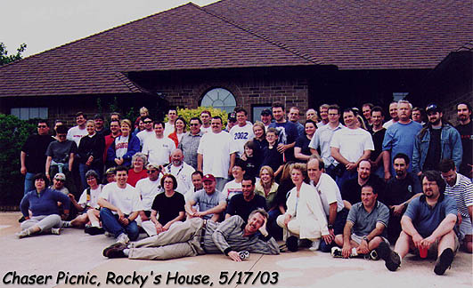 The Storm Chaser Picnic was held at Rocky Rascovich's farm northwest of Oklahoma City. Approximately 70 storm chasers from around the world attended the party. It was nice to see old friends and meet new people. Everybody was excited about the recent tornadoes and saddened by their damage. Some local chasers' homes were narrowly missed by one the Oklahoma City tornadoes. After the barbecue, everyone gathered to watch some recent tornado footage. There was some amazing video from George Kourounis, Jeff Piotrowski, Dave Lewison and others. Chasers also discussed and compared forecasting techniques. The Strom Chaser picnic is a great way to learn new forecasting methods. A crew from Pioneer Productions was filming the group for an upcoming documentary. Like Chris and I, there were many chasers who had just arrived for two weeks of chasing. The severe weather pattern had just ended and we were worried that quiet weather would dominate the Plains. Other chasers had just experienced the most number of tornadoes ever recorded and were leaving the next day after their two weeks. In the late afternoon, Chris and I left the party and drove north to get in position for possible chasing in Colorado the following day. We arrived in Colby, Kansas (northwestern Kansas, near Colorado) early Sunday morning.
