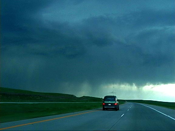 The chase day started in Colby, Kansas. Chris Kridler and I each checked data in our separate rooms, then compared the forecasts to decide on a target area. Instability was marginal. We hoped that storms would form from a combination of upslope at the edge of the Rockies and convergence from a diffuse outflow boundary (cool moist air from previous storms). We left the hotel at 12:30PM, and our initial target was Limon, Colorado. We headed west on I-70, crossing into the Mountain Time Zone. About 35 miles west of Limon, the overcast sky started to clear. Sunny weather meant additional heating and energy for storms. Chris and I briefly checked data (1P) in Limon before turning north on 71. We arrived in Last Chance, Colorado at 3PM. We had heard that towers were going up southwest of the town; however, the storms appeared mushy and were dying. While in Last Chance, we met up with Scott Blair, Eric Nguyen and Scott Currens. We waited in a vacant lot, watched the sky, and compared forecasts. Our group did briefly head west to investigate some more towers but they were falling apart. Scott and his group continued west while Chris and I went back to Last Chance. Another storm formed to the south near Punkin Center. We blasted south at 5:15PM. We could see the storm in the distance. It initially looked decent but then fell apart. Disappointed, Chris and I pulled off in a field along 71 and watched the sky. Jason Persoff, M.D., who was also out chasing, rendezvoused with us. We watched the sky and commiserated about the poor longterm forecast. Jason was also out for the last two weeks in May. He has family in Denver and could visit when prospects were poor. We waited and watched (2P). A few storms formed in the distance but they were moving away from us and couldn't be intercepted. At 7PM, we went south to Limon, then west on I-70 to intercept storms that were exploding just east of Denver. I-70 turned northwest and we could see the storms. The main one appeared linear (3V) though it had a nice hail-shaft (4V) (pic 1), (5V)(pic 2) to our southwest. By 7:20PM, we watched some nice CG's (cloud to ground lightning) (6V) by the hail-shaft. This was a linear storm. We continued northwest and stopped at a rest area near Deer Trail at 7:40PM. Jason continued toward Denver. There was a more isolated storm developing to our southwest. A wall cloud (6V) (pic 1) , (7V) (pic 2) formed at 7:43PM and lasted about 7 minutes before the storm was choked by another storm. The storms had merged into a line and night would soon arrive. There was no more chance of photogenic storms. We left the rest area at 8PM and drove northwest on I-70 until we were about 40 miles from Denver. At Deer Trail, we turned north and then picked up 36 to head back east. We couldn't return on I-70 because our route was blocked by the storm core. We passed through Last Chance again while on our way to Hays, Kansas.