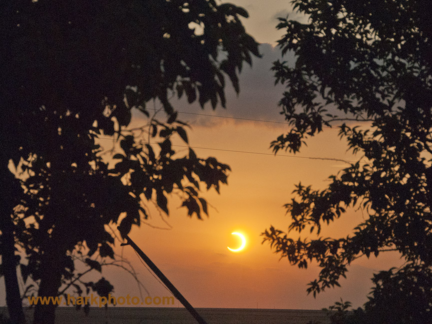 I started back at the Wichita Inn in Wichita, Kansas after a fun day of tornado intercepts. With no significant possibility of supercells, I decided to check out the annular eclipse that would be best visible in New Mexico and points westward. Jason Persoff and Robert Balough also stayed at the hotel. After a quick brunch we headed south with a target of Lubbock to Clovis, New Mexico. We also convinced the newly engaged Canadian meteorologists, Dayna and Brad to join us rather than chase mushy storms in Oklahoma. In a caravan also including Simon Eng and John Mann, we drove south to Oklahoma City and west toward Amarillo. Instead of targeting storms, we wanted sunny areas and most of Oklahoma and parts of Texas were overcast. We stopped in Elk City to pick up some welding glass to view the eclipse. The skies mostly cleared by Amarillo. From Amarillo, we headed southwest and then slightly back north to avoid an area of clouds. We finally found a place to shoot some pictures. Photography was difficult as one couldn't look at the sun even to focus through the viewfinder, and I didn't trust the welding glass for my own eyes. Even without total darkness, the eclipse was an exciting and rare event to observe and photograph. After sunset, we all drove to Clovis, New Mexico.