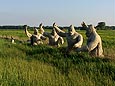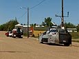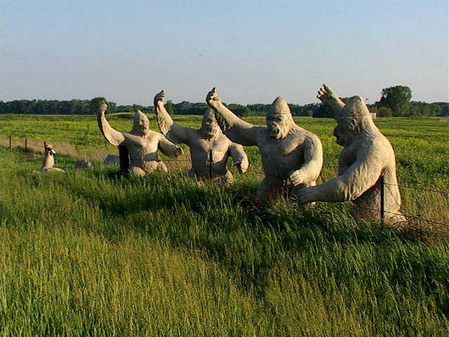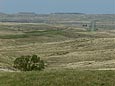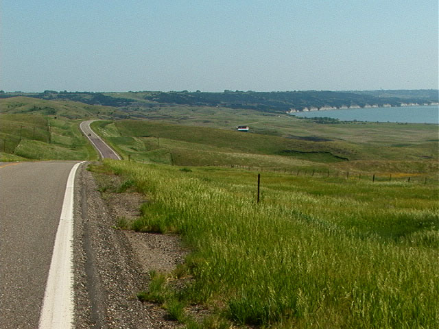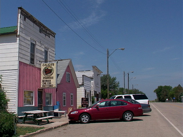 After crossing into South Dakota on 83, I entered the tiny town of Mound City. There were only a few buildings and houses surrounded by grassland. There were no other towns for at least 30 miles in any direction. I hadn't planned on stopping but a sign advertising "cheese buttons" caught my eye. What the hell is a cheese button? I saw a little restaurant called "Calicos, Home of Georges Famous Cheese Buttons." Since it was lunch time, I decided to check it out. Calico's is a German-Russian restaurant. (It also serves as a hunting lodge for pheasant hunters) Many of the pioneers in the Dakotas were originally Germans who had lived in Russia. People in that region still often eat traditional dishes. Cheese Buttons are also called Kase Knoepfla. A spicy cheese, sort of like cottage cheese, is wrapped in a tender noodle. They are quite good. I also had Knoepfla soup which is a potato and onion soup with dumplings and a Barushka which is beef and kraut rolled and baked in thin dough. This was a welcome change from the usual burgers, pizza and unidentified fried stuff commonly sold in gas stations under hot lamps.
