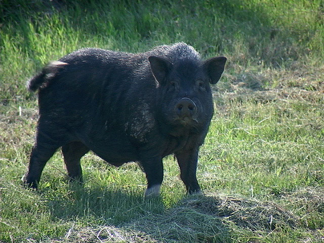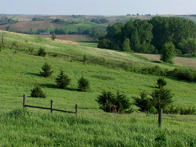 After a quick meal in Omaha at Cracker Barrel and check of data, I continued northward. I took back roads through eastern Nebraska and the Omaha and Winnebago reservations. The landscape was beautiful with rolling hills and plowed fields. The soil was very dark and fertile in this region especially along the Missouri River. I crossed into South Dakota and the land became flat. While driving, I saw two strange animals digging in a nearby unfenced plowed field. I had to check this out. Upon closer view, they were wild boar digging old corn cobs. I took some pictures and was careful to keep a safe distance. Wild boar can be very dangerous. The white pig charged and I bolted for the car. The pig ran up to the vehicle, circled a few times and then stopped, looking at me. It then darted into the nearby woods. The black one followed, stopping long enough for the get a quick pic with the video camera. Along this stretch of highway, I saw a couple of deer and pheasant.