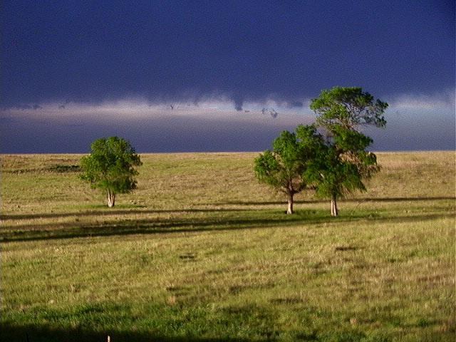 I know the season is really bad when I have to go to North Dakota for storms. My initial target was northeast of Bismarck. I left Rapid City and headed east, driving by the Badlands and the famous Wall Drug. I haven't been there since I was in college driving around the country and camping with my roommates. Wall Drug is sort of like South of the Border, but less tacky. I turned north on 63 and drove through beautiful rolling grass covered hills with scattered trees in the low areas. I took back roads to avoid the larger towns. In McLauglin, I ran into the Doppler on Wheels group. The armored Tornado Intercept Vehicle was also in the town. They were waiting and checking data. I continued north until I reached the Bismarck area. I liked the southeast winds and area of cumulus. While checking data and preparing my vehicle, I noticed that an area of cumulus just to the southwest became “agitated” and form small towers. The data showed that the front was just to the west. Storms that could move along the front had the highest chance of tornadic potential. I waited just east of Bismarck and watched the storms develop. Unfortunately, there were three in a north south line. The middle storm seemed well enough isolated from the southern storm and it was gaining strength. I drove north on 83, then west and north on 1804 to get a better view. It initially looked good though high-based. Just as it was showing more signs of development, the southerly blocked my initial storm's inflow. I drove east on a dirt road, then south to intercept the southerly storm. As the storm, moving in a northerly direction, passed north of I-94, I drove east for a better view. Visibility was poor due to rain and hail. My east road became dirt, and I had to pick my way along the wet muddy surface to avoid sliding into a ditch. This delay caused me to lose the storm since it was rapidly moving north. I wasn't worried since it was not looking good on radar. I finally reached a paved road and noticed that a better and more isolated storm had formed about 30 miles south. There was initially nothing competing with it for energy. I headed back south on 1804, and I could soon see a nice updraft. There was also a rain free base. Darkness was approaching, and I ended the chase when I couldn't see any more storm features. I watched the intense lightning for awhile, then drove back to Bismarck. In the city, there were scattered gold ball sized hail stones from the storm that I was previously observing. I stopped for dinner at Perkins. Testaurant was full of about 50 storm chasers. I ate with Jim Leonard of Cyclone Tours, Matt Crowther of The Weather Channel, Jay Antle, Mike Umscheid and several other chasers. Thanks to Jim Leonard and Dave Lewison for nowcasting/forcasting suggestions. Video of the storm and hail was purchased by The Weather Channel.