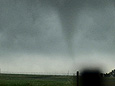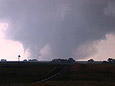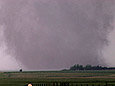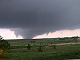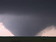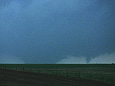 This was the best storm chase that I have ever had with close views of multiple tornadoes. The town of Quinter escaped two close tornadic storms. My excitement was tempered by seeing that car and injured occupant due to the tornado. I was later contacted by Randy, the driver. He was briefly hospitalized with a collapsed lung, broken rib, ruptured eardrum and bruises. Luckily, Randy made a full recovery. He later made a very nice powerpoint presentation of his experience going through the tornado. Go to Randy Applegate's Home Page and click on "Randy and the Kansas Twister."