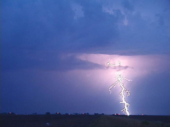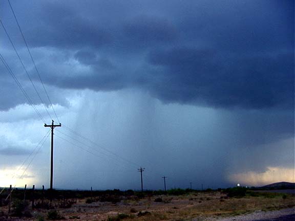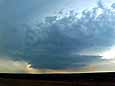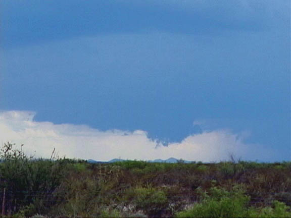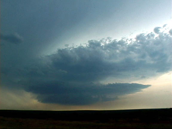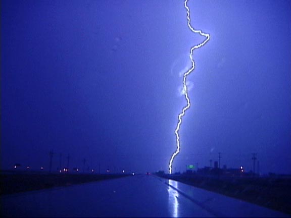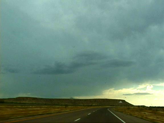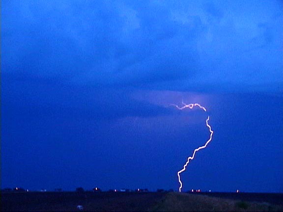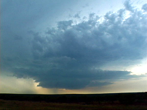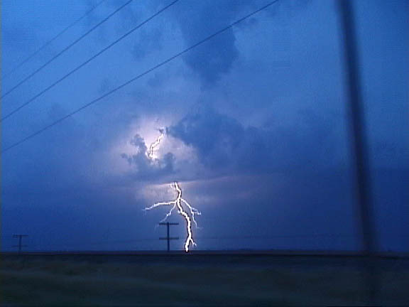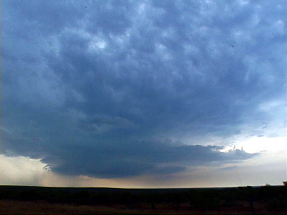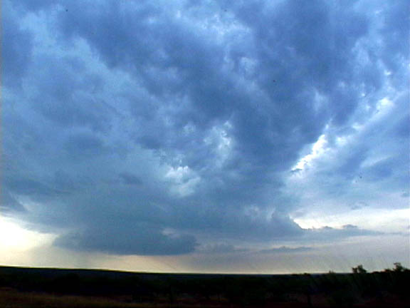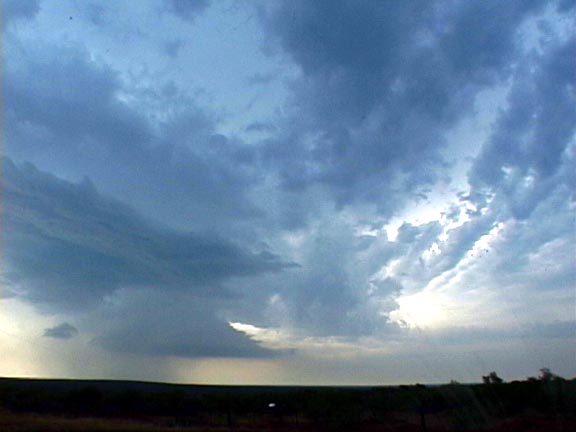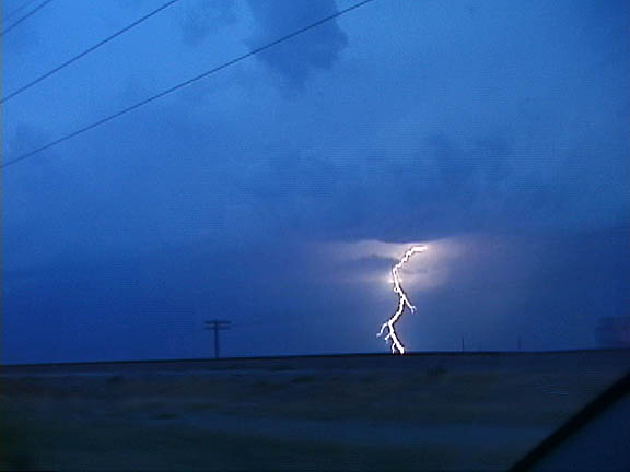 I made another check of the data. Storms were forming west of Lubbock, and I expected them to move east and intensify. Not much else was going on except for some showers in the Texas Panhandle. Since Lubbock was also near my target for Sunday, I headed south and then west. ( I later found out there was a brief tornado in the Texas Panhandle observed by Jeff et al, oh well.) Along the way, I was notified of a storm near Snyder, Texas with a severe warning. This was on my route. As I neared the storm, it died. A new one formed to the northwest near Post, Texas. The storm rapidly became a beautiful LP supercell (supercell pic: #1 (2V), #2 (3V), #3 (4V),#4 (5P), #5 (6V), #6 (7V)) with inflow bands and striations. The storm lasted from 7:10 to 7:35PM and I was able to take some video before it died. I continued toward Lubbock watching lightning over the city (lightning pic:#1 (8V),#2 (9V),#3 (10V),#4 (11V)). A storm developed to the west of the city and a tornado warning was issued at 8:55PM. I targeted the storm and blasted west on 114. Dave Lewison, via cell phone, gave me some great radar guidance. The possible tornado dissipated and the storm formed a huge bow echo. I was blasted with 70 MPH winds and frequent lightning (12V). I ended the chase as it was dark and went to a Motel 6 in Lubbock. Although I didn't see a tornado, I had a very good chase. I saw great storms and had the opportunity to take some great scenic photos.