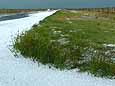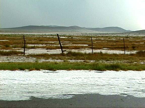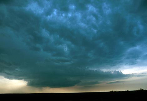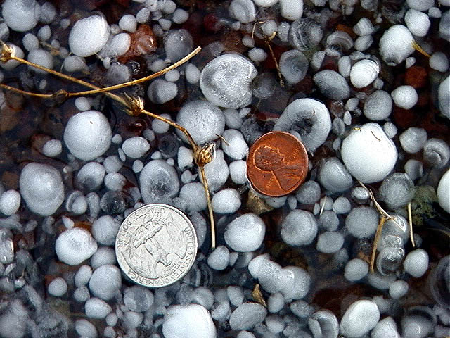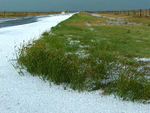 Sunday, May 25, began with disappointment. A promising forecast the previous day was downgraded. Supercells were unlikely and the threat for tornadoes was removed by the Storm Prediction Center. Severe storms were forecast over southwest Texas. They would form over the mountains and move eastward. I left Lubbock and headed toward Fort Stockton, Texas. Although the Texas landscape can be very pretty, the area near Midland is quite ugly with fields of rusting oil tanks, pumps and other equipment. When I arrived in Fort Stockton, storms (13V) were already developing over the western mountains. I headed west on I-10 into Reeves County and watched a storm to the south. By 4:17PM, the storm formed a ragged wall cloud (14V) and lowering (15V). Soon, the storm lost its structure. The storms were forming a line and were obviously not supercells. I struggled for an hour trying to get my Verizon wireless internet to function while parked on low mesa near town. Luckily, I was able to call Tim Vasquez of Weathergraphics for some radar data. One storm, south of Fort Stockton, was a bit larger and moving slowly eastward. I drove east on I-10, then blasted south on 385 barely escaping the approaching core of the storm (16V). Cool wind was blowing away from the storm. It was linear, outflow-dominated and would never produce a tornado. I watched the storm from the south until it started to die. I then dropped further south and drove through another storm. I encountered quarter-sized hail that covered the road like snow (pic#1 (17V),pic#2 (18V)). The hail stones (19V) were almost penny-sized and some showed visible banding. Fog, several inches in depth, floated above the ground. I broke through the storm and then headed west on 90 through Marathon, Texas. I briefly stopped to watch the distant storm (20V) and chat with a couple of chasers. I had driven 60 miles without passing a single gas station. The road was surrounded by angular mountains and fields with scattered shrubs. I arrived in Alpine, Texas which is southwest of Fort Stockton. The next day, I reviewed the weather data. Although there was a slight chance of storms in a long north-south line just east of the Rockies, there was no focusing mechanism and supercells and tornadoes were unlikely. The forecast was even more dismal over the next few days. I checked the long-range outlook and the ridge in the jet stream across the Plains was predicted to finally move a week after my return home. At that point, it was too early to leave because I didn't trust the forecast past a few days. Since no storms were predicted, I headed south to explore the mostly uninhabited region (21V) of Texas near the Mexican border and to increase my portfolio of landscape pictures.