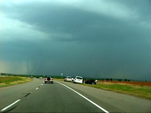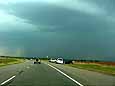 After breakfast with the Pioneer Production crew who were going to follow chaser Jeff Piotrowski, we left Amarillo at about 11:30AM with a target area of Childress, Texas. This area had better moisture, winds from the southeast and a boundary from earlier storms. Outflow boundaries from storms can provide an area of focus for storm development or storms can intensify when they interact with a boundary. Childress also had good roads to the south, east and west in case we had to rush off to intercept a storm. The forecast was very difficult. Upper level winds were very light. Moisture return from the Gulf had improved but was not very good. There were many possible target areas. We arrived at a gas station in Childress, Texas and checked additional data. Both Ron and I pulled up weather data via cell phone modems. There were several boundaries including one just to the south of Childress along with boundaries near Lubbock and in the Texas Panhandle. While discussing data, Jeff Piotrowski and the Pioneer team arrived. Jeff looked at weather data with us and we came up with three possible target areas. The Lubbock, Texas area, near Childress Texas or in the Texas Panhandle. Despite the Storm Prediction Center not issuing any severe storm risk for the Texas Panhandle, Jeff Piotrowski was fairly confident a supercell would develop in the Texas Panhandle. There was evidence that a mesolow would form near Pampa; however, moisture return from the south was still doubtful. We weren't convinced and chose to watch a storm forming just to the south. We drove northwest on 287 to Estelline and followed a storm back to Childress. Along the way, we passed Jeff and the Pioneer Crew photographing the storm (1V). We encountered heavy rain as we entered Childress at 3:45PM. We stopped in Childress and monitored the storm. It produced some small hail but it never intensified. At that point, the storms appeared to be forming lines and not strengthening. George and Ron, who have a long drive to Canada, decided to leave along with Jack and his son-in-law. Scott had to take his two friends to the Dallas airport and also decided to leave. We said our goodbyes at gas station in Childress.
