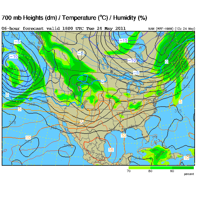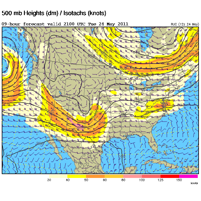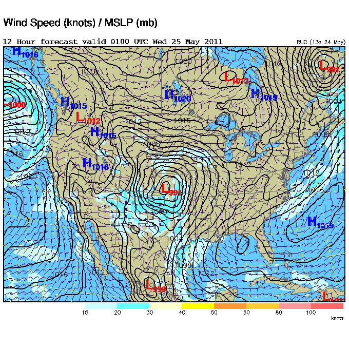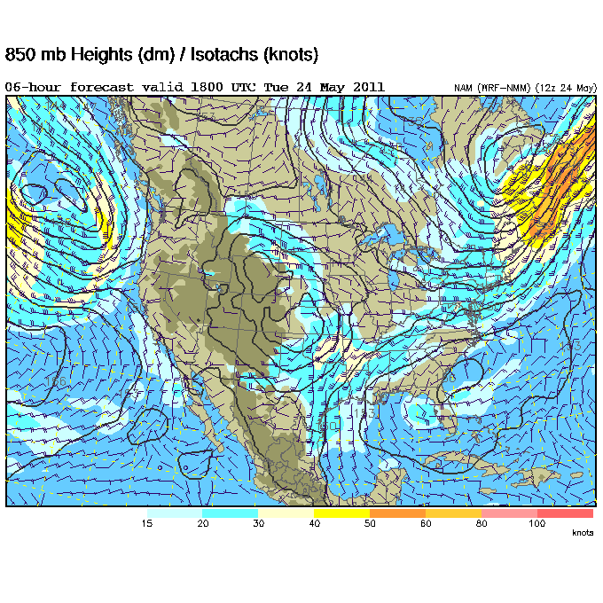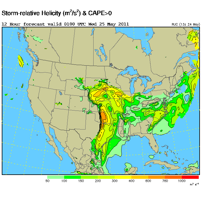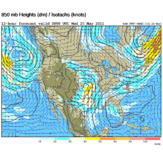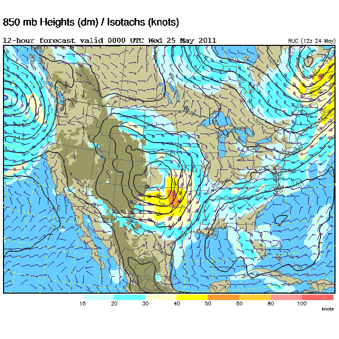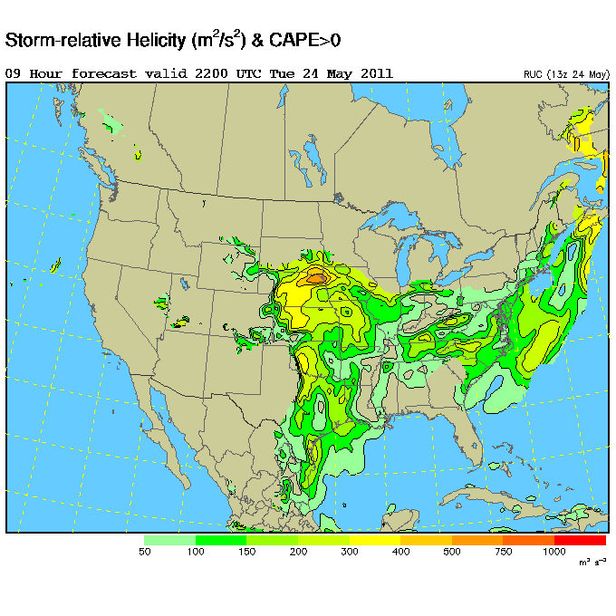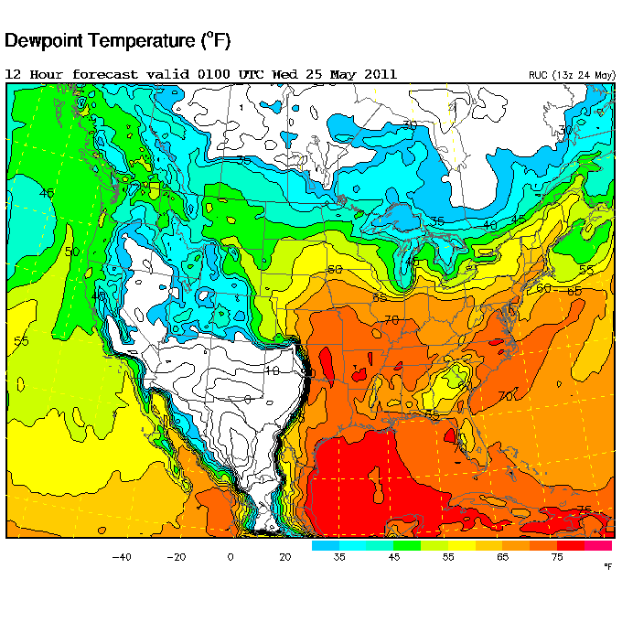 This was an exciting, scary and sobering storm chase. I had one good intercept with a tornado near Shawnee, Oklahoma and encounters with the deadly EF 5 El Reno and Piedmont wedge tornado. A tornado outbreak had been predicted for several days. There was a surface low in northwestern Oklahoma at the base of the panhandle and a negatively tilted trough giving broad southwesterly flow across the region. The low was expected to strengthen and shift northeast. Rich moisture was coming up from the Gulf of Mexico with upper 60's and lower 70's dewpoints across the area. I really liked the southeasterly surface and 850mb flow. Expected CAPE values would be 4000 to 4500. There would be backed winds along the dryline and later storm development along and ahead of that boundary. As expected, the SPC issued a high risk for long track violent tornadoes. Storms would form in Kansas and then there would be storms in Oklahoma.