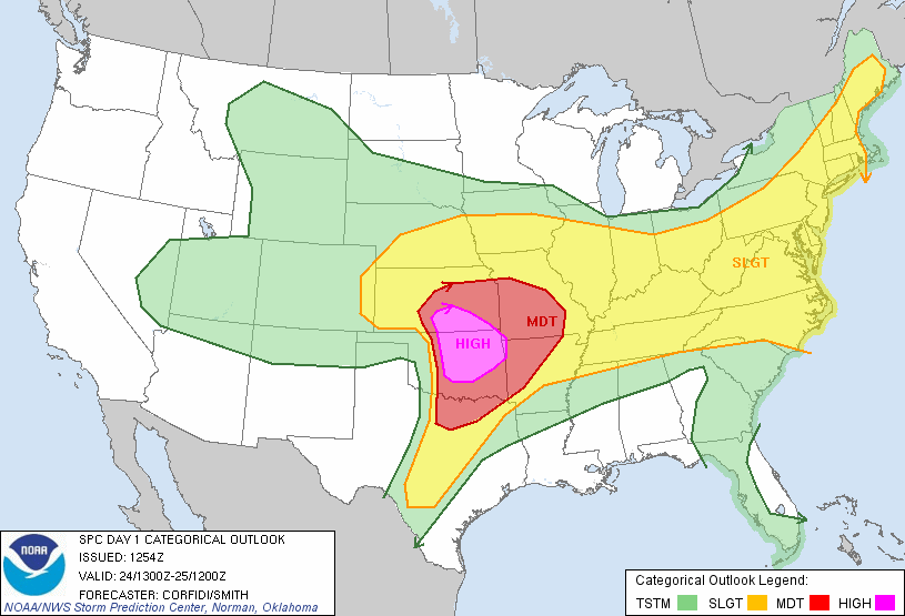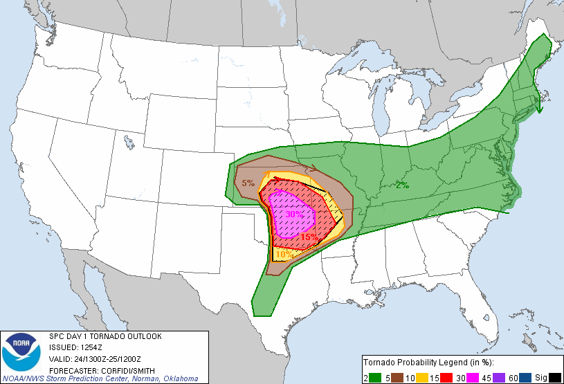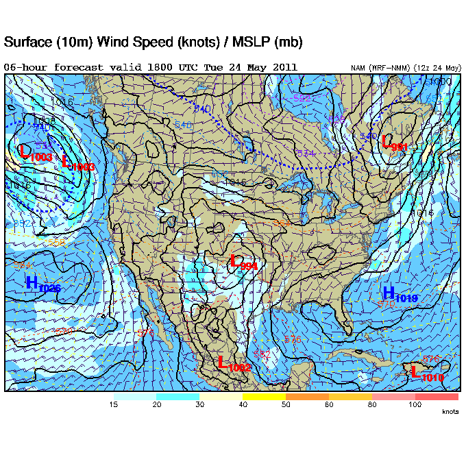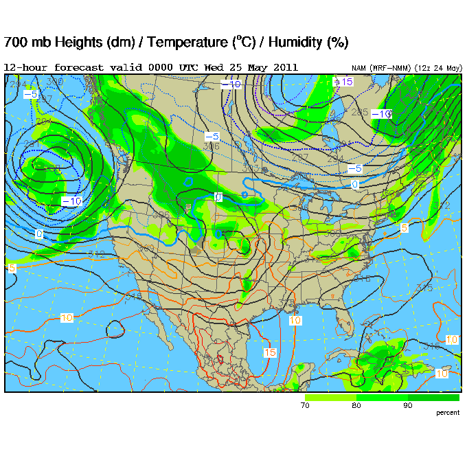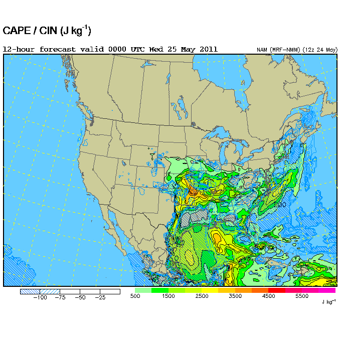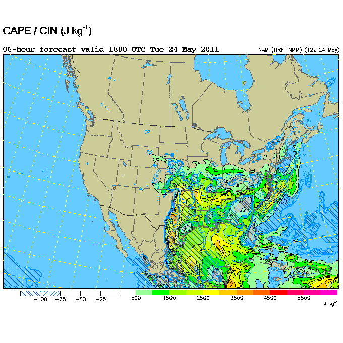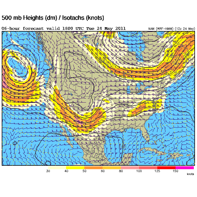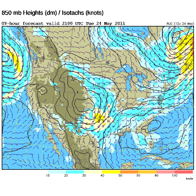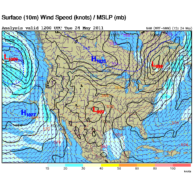 This was an exciting, scary and sobering storm chase. I had one good intercept with a tornado near Shawnee, Oklahoma and encounters with the deadly EF 5 El Reno and Piedmont wedge tornado. A tornado outbreak had been predicted for several days. There was a surface low in northwestern Oklahoma at the base of the panhandle and a negatively tilted trough giving broad southwesterly flow across the region. The low was expected to strengthen and shift northeast. Rich moisture was coming up from the Gulf of Mexico with upper 60's and lower 70's dewpoints across the area. I really liked the southeasterly surface and 850mb flow. Expected CAPE values would be 4000 to 4500. There would be backed winds along the dryline and later storm development along and ahead of that boundary. As expected, the SPC issued a high risk for long track violent tornadoes. Storms would form in Kansas and then there would be storms in Oklahoma.
