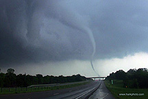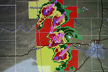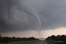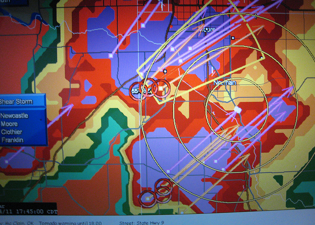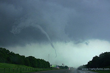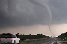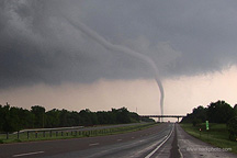 I was initially chasing with Dave Lewison, Scott McPartland, Chris Kridler and Canadians Mark Robinson, Brad Rousseau, Meghan Yeo, Dayna Vettese and Heather Reynolds. We started in Enid, Oklahoma. All of us had initially forecast for north-central Oklahoma. After a quick lunch, we decided to head west but we were already seeing signs of development in southwestern Oklahoma on satellite imagery. Upon additional discussion, we decided to head south and then west. Initiation occurred near Elk City, with an isolated storm. Additional storms were developing to the south. We had driven south on 81, then west on 33. By 2:33 PM, we were in Watonga, Oklahoma. Decision time! The initial storm was just to the northwest while there were more storms forming to the south. At this point, I figured the isolated storm to the north was moving away and may be difficult to intercept while there were better storms to the south. Dave, Scott, Chris and the rest of the group decided to go after the northerly storm. They barely missed the Canton wedge but saw a nice tornado near Fairview from that storm. I headed south from Watonga on 270/281. I took a quick detour west to observe a tornado-warned storm but was not impressed, and I didn't want to be cut off by the more massive storm to the south. I continued south and reached Geary, Oklahoma by 3:25 PM. There was a huge tornadic storm south of I-40 and south of my position. At this point, my Delorme GPS crashed, and I was only using the rough map on ThreatNet and a Rand McNally Atlas. I was worried the storm would turn right (it did but slightly farther north than I expected), and I would be caught on the north side of the storm. I wanted to position just east of it. I drove south to I-40, and then headed south from exit 104 on Methodist Road. The huge dark tornadic storm was rapidly approaching my position from the southwest. At 3:41, I was having difficulty seeing the base due to a low hill. I continued south, then turned west on State Road 37. I still couldn't see the storm base due to a hill. Finally, I had a good visual of the massive storm. Directly to my south at 3:46 PM was a rain-wrapped tornado. I later determined that this was the dissipating stage of the Lookeba, Oklahoma tornado. The storm was moving northeast and threatening to cut off my southerly route. I blasted a bit east, then south on 37 (a continuation of S. Methodist Road). The intensifying storm was approaching my road as I raced to get by it. Wrapping rain curtains overtook me by 3:47 PM and I saw pieces of trees fly across the road toward the west. I was having difficulty seeing to my southwest due to trees. The winds increased and I felt the car move due to those winds. By 3:49 PM, the winds shifted and I turned east. I hit by southerly winds and to the north, I was staring at a giant rain-wrapped wedge tornado. I couldn't see around it and contrast was poor. I stopped at 3:51 and watched power flashes to the north. I was blasted by RFD. I headed east on 37 watching the tornado to the north as it faded into the rain and clouds. The road options were terrible and 77 stair-stepped to the southeast. Unfortunately, I missed a nice north option that lead to the only crossing of the Canadian River until 81 thanks to my GPS failing. I turned east on 152 then north on 81. I blasted north to attempt another intercept. According to radio reports, there was a “maxi-tornado” doing extensive damage north of I-40. It was moving east northeast and would cross the northern side of El Reno. I raced northward on 81 and reached the interstate by 4:27 PM at the El Reno exit. I turned off on S. Shepard Avenue to take a more direct route north. By 4:30PM, I could make out the dark rain-wrapped wedge tornado just to my northwest. I saw more power flashes. I stopped at 4:32 PM and storm was directly to my north. Continuing farther north wouldn't likely improve visibility and there was no decent east option. I also didn't to get caught in the RFD as the tornado moved east. I just watched it for a while as it moved northeast. The violent tornado was taking a direct path toward Piedmont, a populated area that included the home of Rocky and his family. I hoped they would be spared.