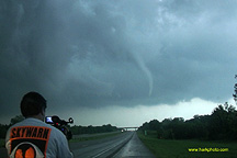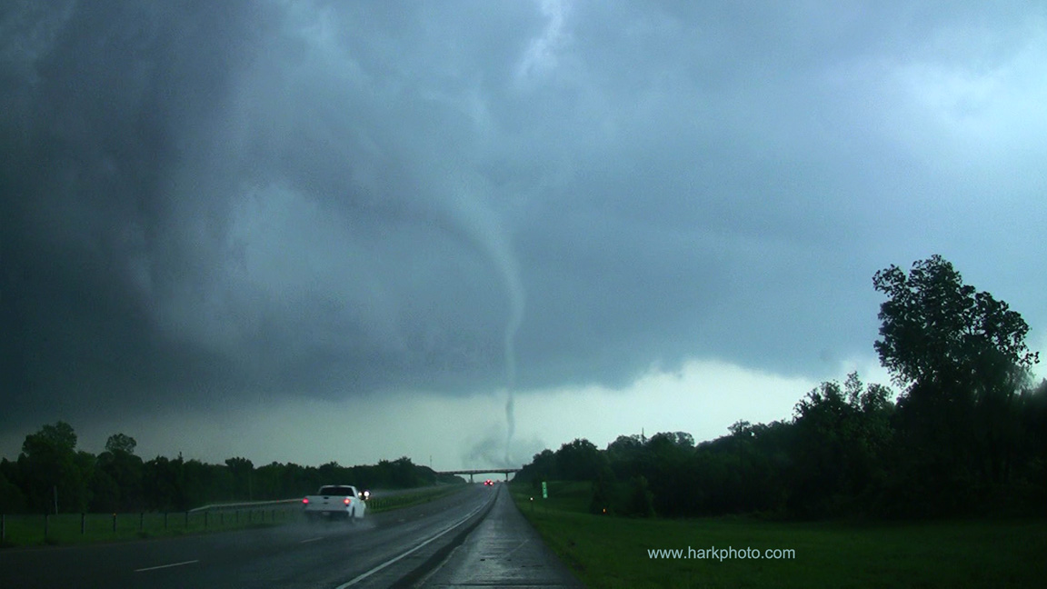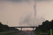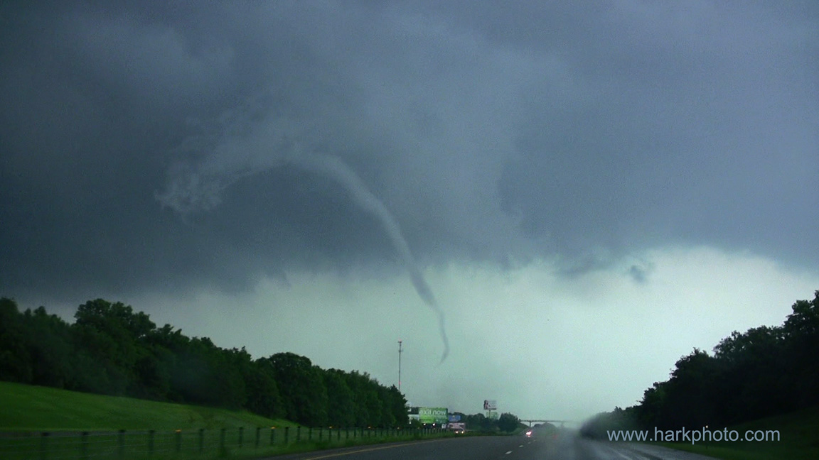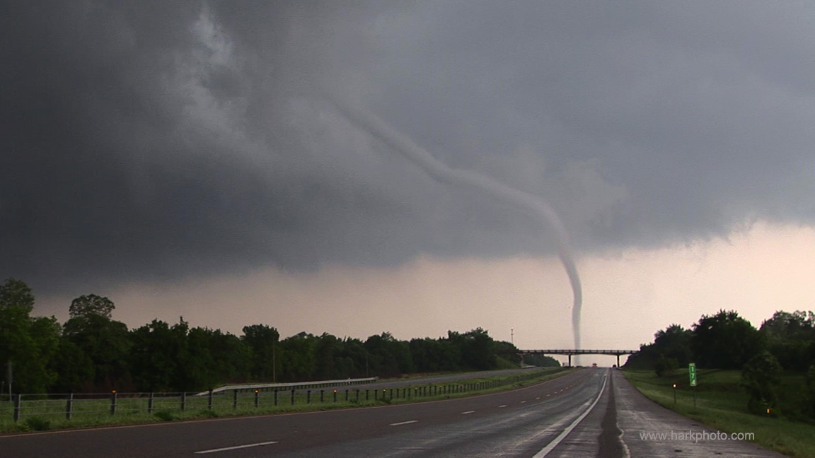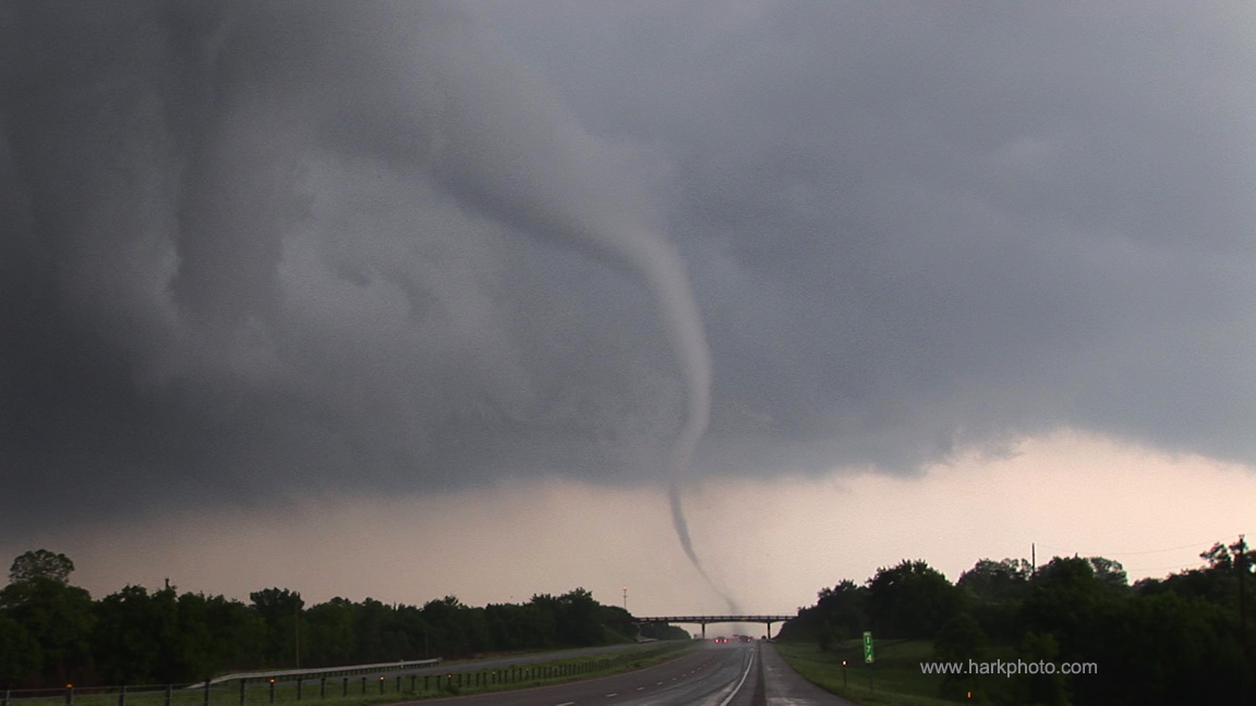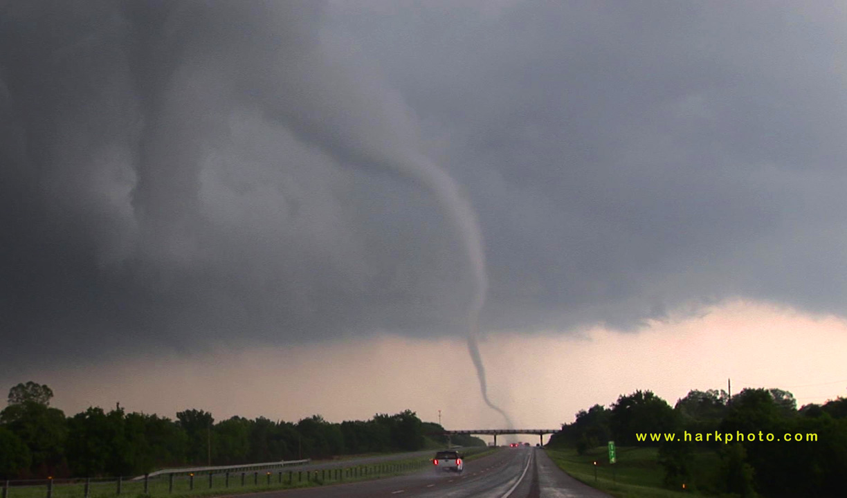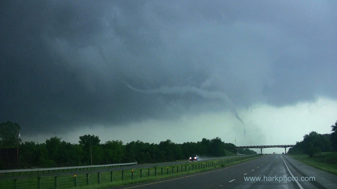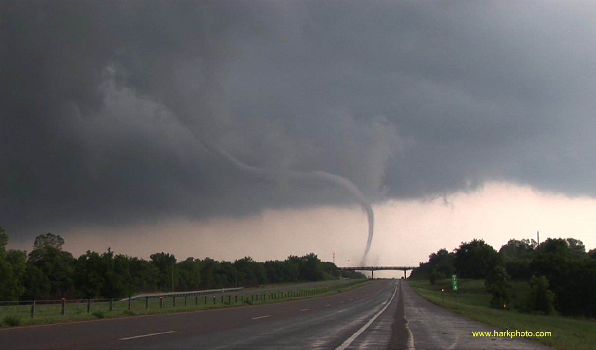 With more tornadic storms approaching from south, I attempted another intercept. I headed east on I-40, then south. There was already a tornado reported near Chickasha. This was rush hour and progress was slow due to rain and traffic. I avoided the limited access highways as my biggest fear was getting trapped in traffic as one these violent tornadoes approached my position. I made it as far as the south side of Norman by 5:48 PM. I was trapped between two tornado-warned storms in very poor visibility. This part of the chase was over. I let the storm to my north pass, and then I headed north and east on I-40. There was a storm approaching from the south, and I had one more chance at an intercept. The presentation on radar was lackluster but I liked the wall cloud to my southeast near Shawnee. I stopped to watch and ran into Chris Collura. Rotation increased and could see an intermittent spinup to the southeast. It increased in size as it shifted northeast. I headed east on I-40 and could see a nice elephant trunk tornado to the east by 6:37 PM. I stopped by mile marker 174 and watched the tornado to my east cross the interstate at 6:38 PM. The bridge in front of me is Ns Co Rd. 330 on the tornado image below. There was a cloud of debris on each side of the interstate as it crossed. I later found out that the second cloud of debris was a truck that was demolished. There was a live view broadcast on television from a nearby helicopter. I approached the tornado and watched it dissipate by 6;39 PM. Visible rotation continued but no more tonadoes. I took exit 186 and headed north on 18 and east on 180/62 tracking the storm. I reached Prague by 7:11PM. At this point, I ended the chase and headed back to Norman. My trip was interrupted by a flat tire that I changed in Shawnee. This was an annoying way to end a wild chase day. I encountered the nasty rain-wrapped El Reno/Piedmont wedge tornado that formed after a handoff from the Lookeba tornado. I was in the middle of that handoff and likely was grazed by the developing circulation of second tornado; one that was later rated as an EF5. I also obtained nice video of the beautiful Shawnee tornado from a safe distance. I was very lucky with my encounter of the developing El Reno tornado and have reassessed my chasing style and the importance of safety. For a high risk day, this was a very difficult chase due to numerous adjacent or “nuisance” storms along with heavy rain wrapping that reduced visibility. This chase was also very sobering due to the terrible devastation caused by the El Reno/Piedmont tornado. Later that evening, I found out that Rocky and his family was safe but many of their neighbors lost their homes.