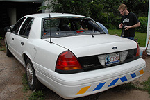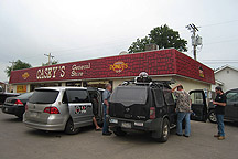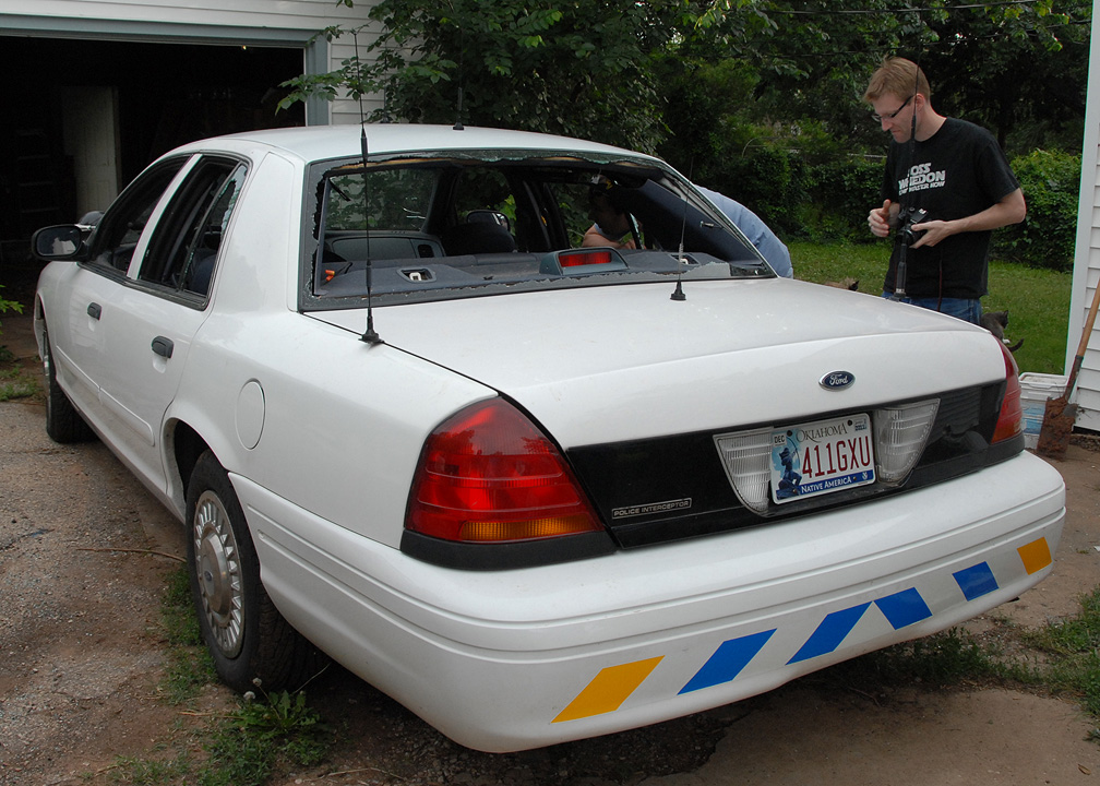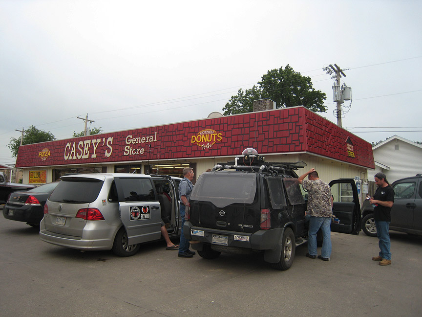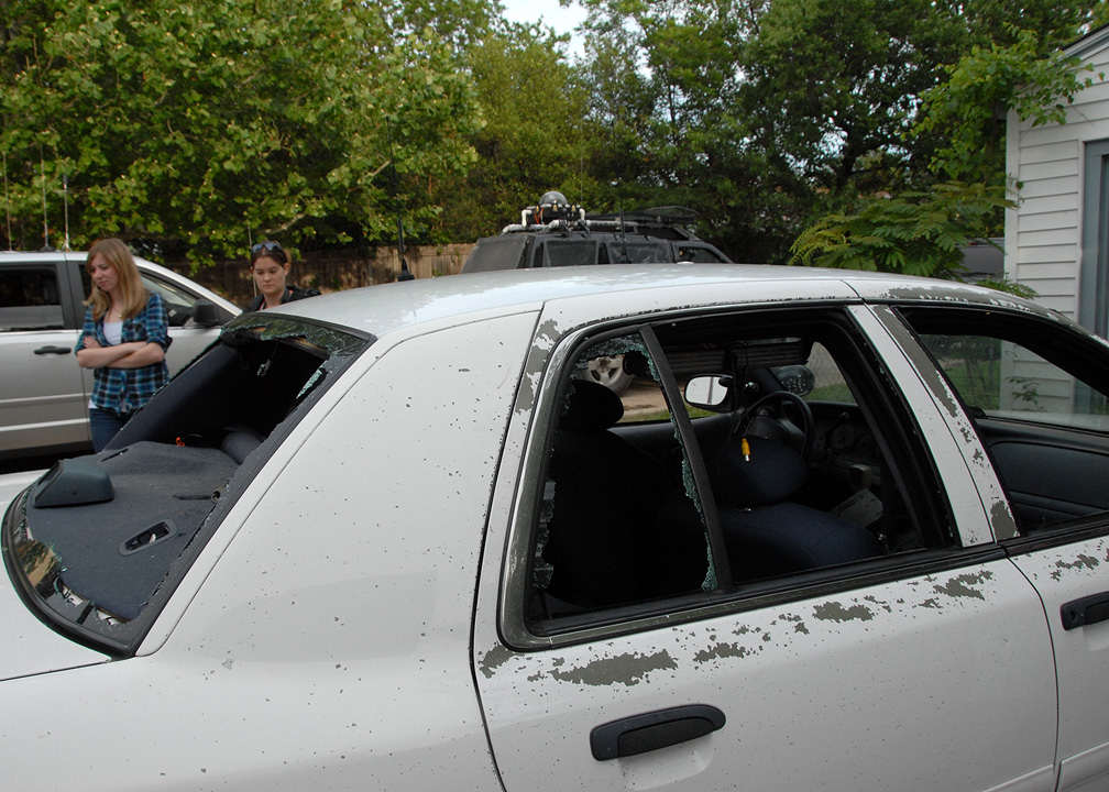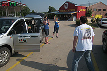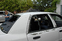 After spending some time at Rocky's house, Rocky and his family joined us for dinner. We also stopped by Chris Novy's house to check out his damaged car. Chris is a friend of Rocky and works in emergency management. He was caught by the same tornado that I encountered and had his car shifted. Except for the windshield, all his windows were blown out and one side of his car had some paint removed from sand blasting. Chris is very lucky to be alive.