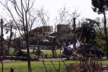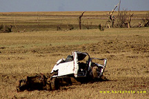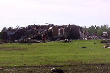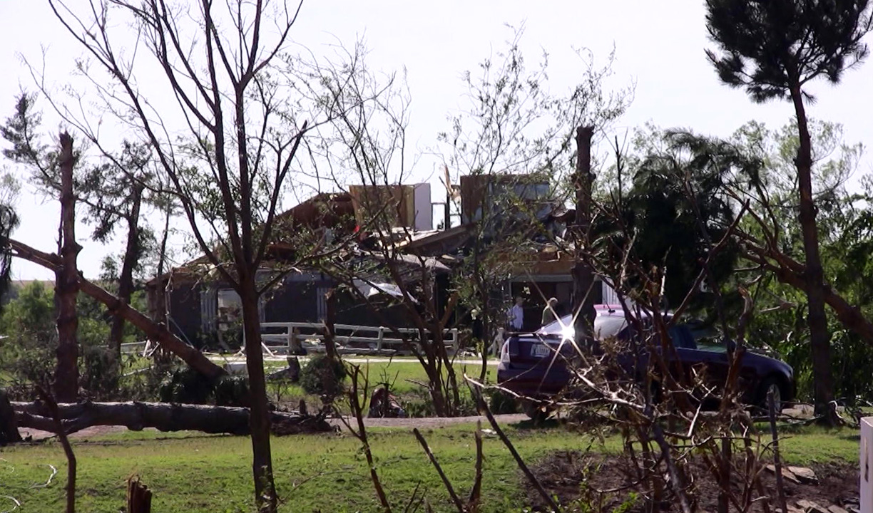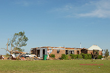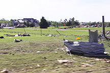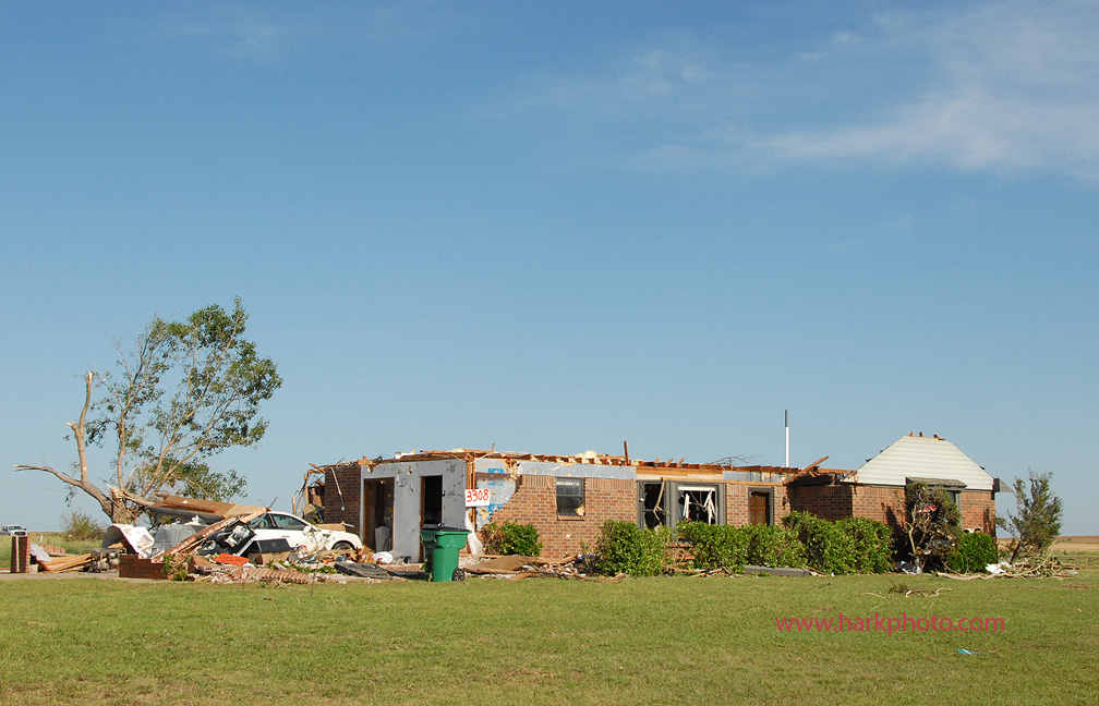 This was another down day and it was nice to sleep in and relax. I spent another night at the Guest Inn in Norman, Oklahoma along with the rest of the group. After a leisurely lunch, we followed the damage path of the EF5 tornado that went through several areas including Binger, El Reno, Piedmont and Guthrie Oklahoma in a 75 mile path of destruction. This was the mile wide rain-wrapped wedge tornado that I encountered just south of I-40 and again from El Reno. Mark needed a few shots for his show and the path took us to Rocky's house in Piedmont. Mark also wanted to interview one of Rocky's sons and his wife who had to flee to the storm cellar. Several days earlier, Rocky had hosted his annual StormTrack barbecue that we attended. We all enjoyed checking out his storm cellar that he had installed after the May 3, 1999 tornado outbreak. It was ironic that we were there again but under unfortunate circumstances. Luckily for Rocky, the massive tornado missed his house by one third of a mile but many of his neighbors had significant damage to their homes. We passed by damaged neighborhoods but the most affected areas were blocked from public access, and we had negotiate a maze of closed streets to reach Rocky's house.