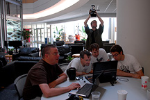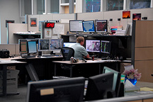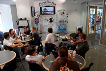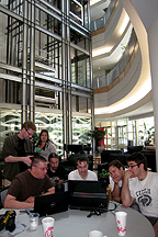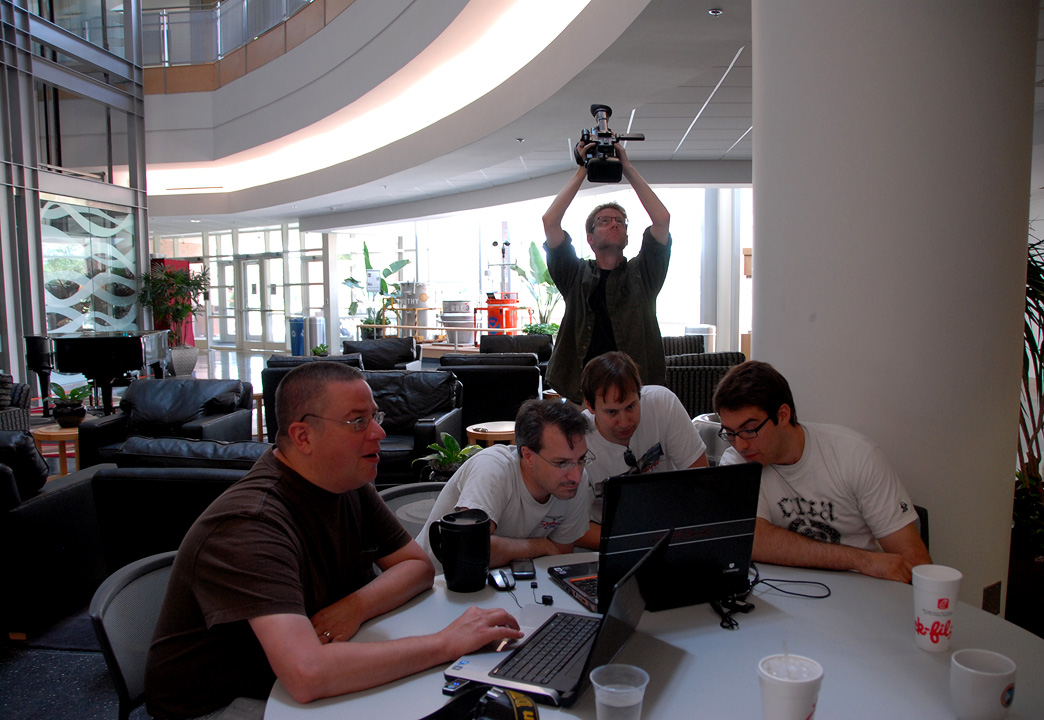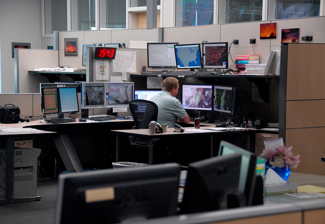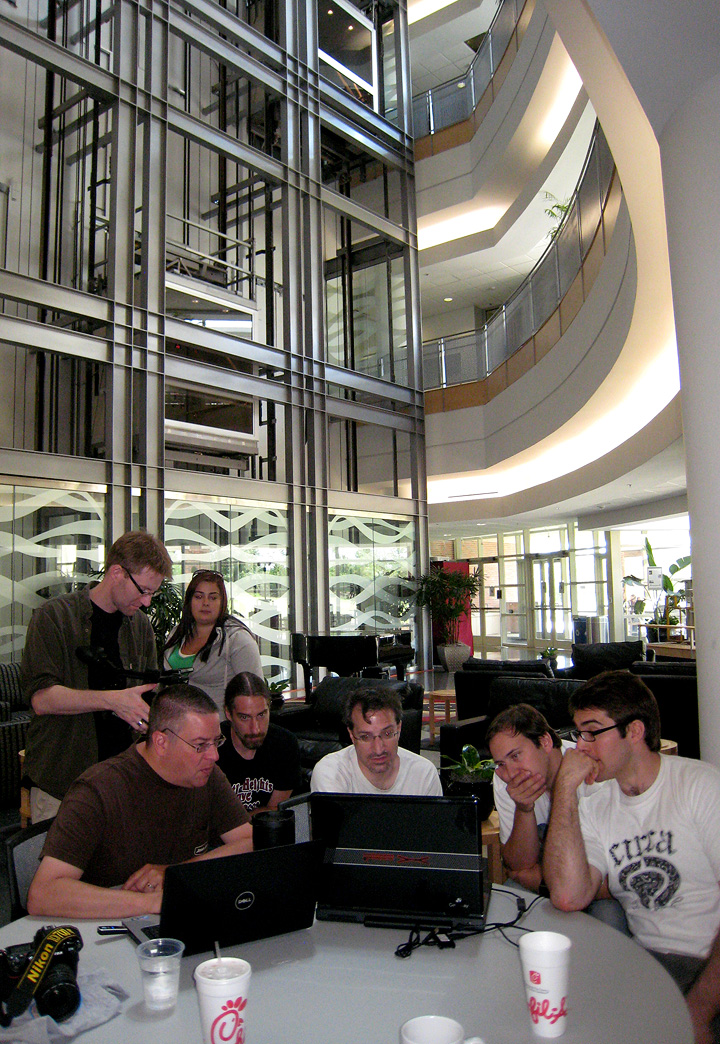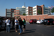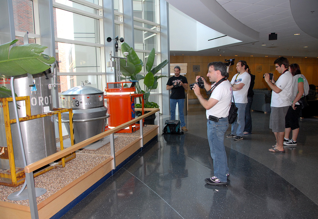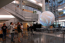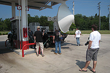 May 27th was a clear sky bust. The target was around Oklahoma City. The parameters appeared great except there was a strong cap or layer of warm air that can suppress development. We started the day in Norman, Oklahoma just south of Oklahoma City. We had time and Jason Persoff was able to arrange through some friends, a last minute VIP tour of the National Weather Center. This new facility houses university and government agencies including the Storm Prediction Center, National Weather Service and the OU meteorology school.This is an amazing facility and is the "center of the universe" for those who research severe weather and climatology. In the lobby, there is a massive globe with a real-time projection of the earth from satellites. After the tour, we ate lunch at the Flying Cow Cafe. We then monitored weather data from the lobby of the National Weather Center. This was a more pleasant place to wait for storm initiation than a gas station parking lot. By mid afternoon, we moved our waiting area to a local barbecue and OU sports restaurant (Rudys). Several of the lead forecasters dropped by while we were there, and we chatted about the recent tornado outbreaks. We joked around in the parking lot and checked out one of OU's Rapid X-Pol mobile radar units. By evening, it was clear that the cap was holding firm and we all left for Woodward, Oklahoma for the evening.
