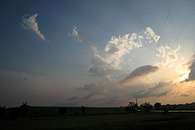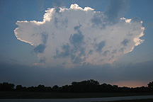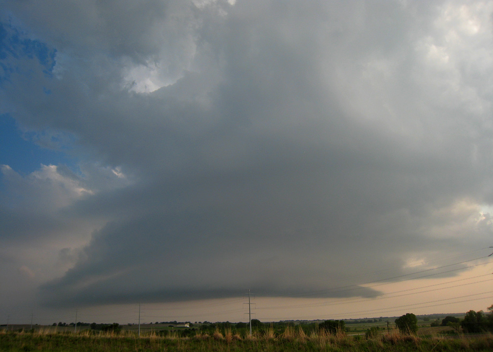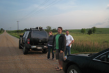I started the day in Salina, Kansas with the usual chasers and Dan Shaw who is from Australia. The day was marginal but there was still the possibility of severe storms especially in northeastern Kansas and southeastern Nebraska. The biggest concern was the cap, a layer of warm air that can suppress storm development. After sitting around the hotel lobby and then at a nearby IHOP, we headed north into Nebraska and east to Beatrice, Nebraska. We stopped and waited for development. While in Beatrice, we ran into Tempest Tours run by chasers including Bill Reid and Brian Morganti. It was nice to see them again along with well-known storm photographer Jim Reed. We also got to meet New York Times best selling author, Jenna Blum. Her first novel, "Those Who Save Us" is about a girl and her mother during the Holocaust. I have not read that book but it has gotten very good reviews and made the best seller list. I did read her second book, The Storm Chasers, about a the relationship between a sister and her brother who is bipolar set against a background of storm chasing. Although a "relationship book," I really enjoyed the storm chasing aspect and highly recommend it. The book has become very popular on the book club circuit and is now in paperback. From the town, we did observe a brief horseshoe vortex, an indication of significant instability. After waiting around in Beatrice, our group shifted northward to Lincoln, Nebraska. On the way, we noticed some towers developing to our north near the city. Soon, one became dominant and quickly intensified. We were in perfect position for an intercept. Just northwest of Lincoln, we could see the storm rapidly growing and showing signs of rotation. A tornado watch was issued for our area. The storm was nicely isolated and showed banding. Suddenly it died. We had hopes for a nice supercell and maybe even a tornado and nothing was left of our storm after about 20 minutes. I think the increasing cap killed our storm. The day ended at a Ruby Tuesdays in Lincoln. After the chaser dinner, we said our goodbyes. I wanted to stay slightly to the south in York while the rest of the group wiould stay in Columbus. There was a severe weather outbreak expected the next day on Monday but choosing a target was be difficult with a planned departure around noon in Wichita. The Canadians were also limited by work schedules as it was also their last day. Scott, Dave, Chris and Dan planned on leaving in the next couple of days but had the option to chase into the Dakotas.