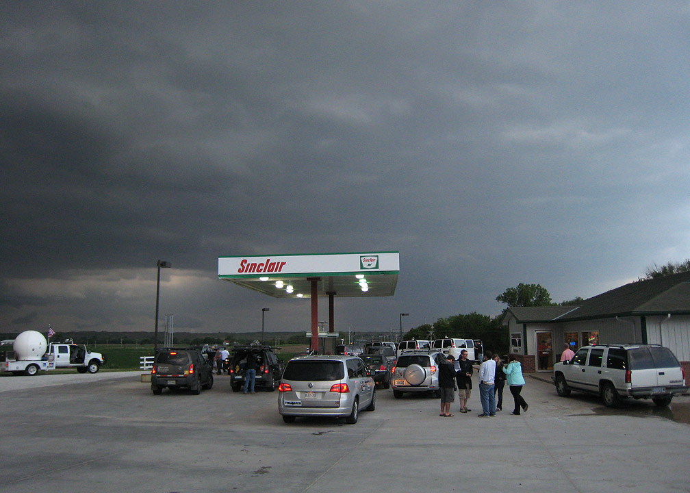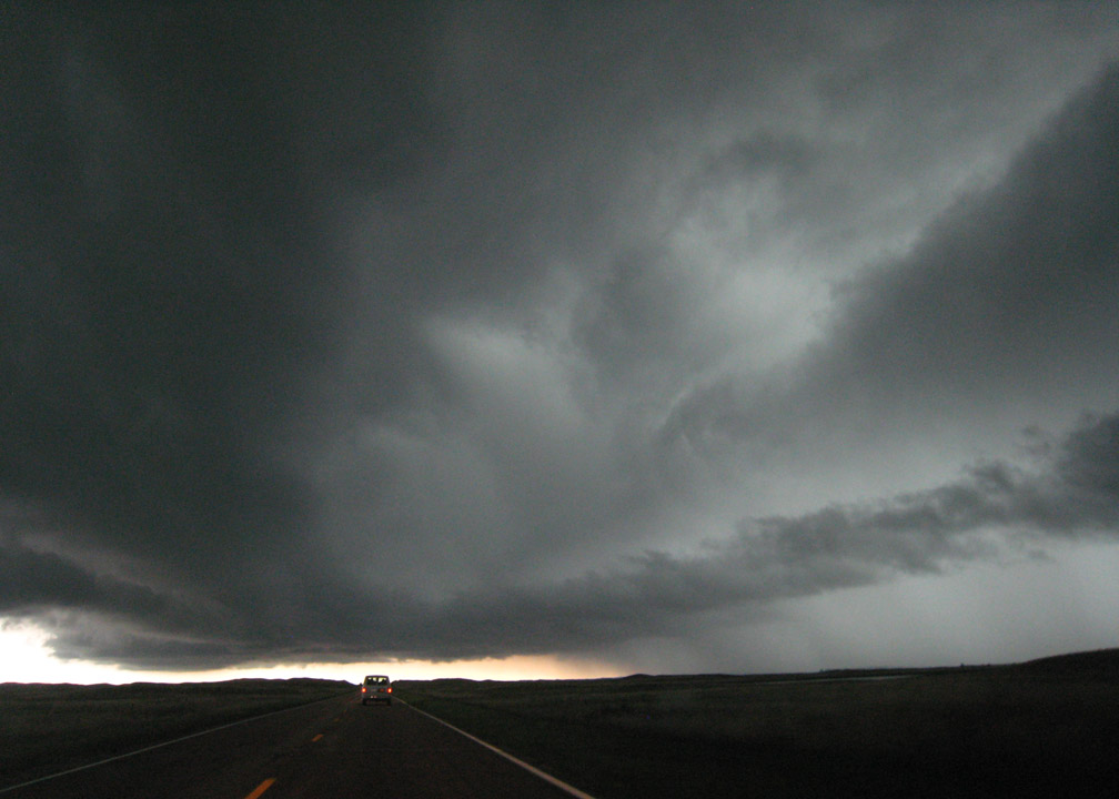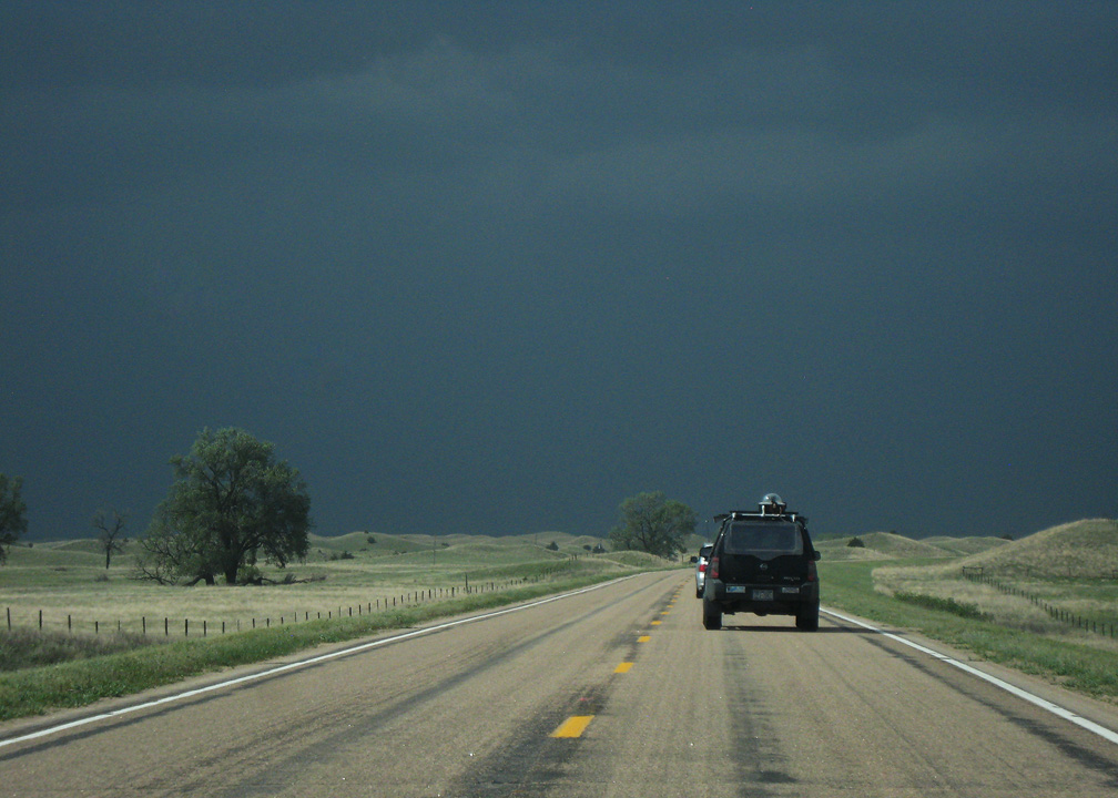 After saying our goodbyes, I drove east. There was a massive squall line to the west with embedded mesocyclones. There was a slight potential for tornadoes but one would have to get too close, and they would likely be wrapped in rain and hail. Isolated storms are much better to chase. I drove through Burwell and southeast to Ord. Since there was still some daylight left, I decided to get another look at the raging squall line to the west. I drove back west and could see a black and brown wall of clouds to the west. Clouds of dust were being kicked up by the outflow. Just south of Loup City, I did see a brief gustnado. These are not true tornadoes but can appear as brief rotating columns of dust ahead of a storm. Unfortunately it died before I could get the camera on it. I had to retreat east as the squall line was accelerating and gaining on my position. In the town of Saint Paul, they were sounding the tornado siren and the area was hit with swirling dust and debris. From the radar, it was either hit with a gustnado or a downburst. I was very annoyed because I had let the tape run out in the dashcam and didn't get footage of myself getting munched. I blasted east, barely staying ahead of the massive storm. My progress was interrupted when I was pulled over by one of Nebraska's finest who let me off with a warning and a thank you for being out and observing the storms. It was getting dark. When I reached 83, I turned south and arrived in York a few minutes before the arrival of the squall line that by now was extending into southern Kansas. I didn't want to drive south in a north-south line of storms and decided to get dinner at a truck stop and let it pass. After I was behind the line, I headed south on 83. The lighting on the back side of the storm was amazing. Lacy flashes pulsated across the sky from different directions. Sometimes they looped toward me, other times, they directly hit the ground. As I wanted to get back soon, I didn't bother taking pictures and just enjoyed the show. I arrived in Wichita around 4AM and was able to get a couple of hours sleep before packing to come home.
