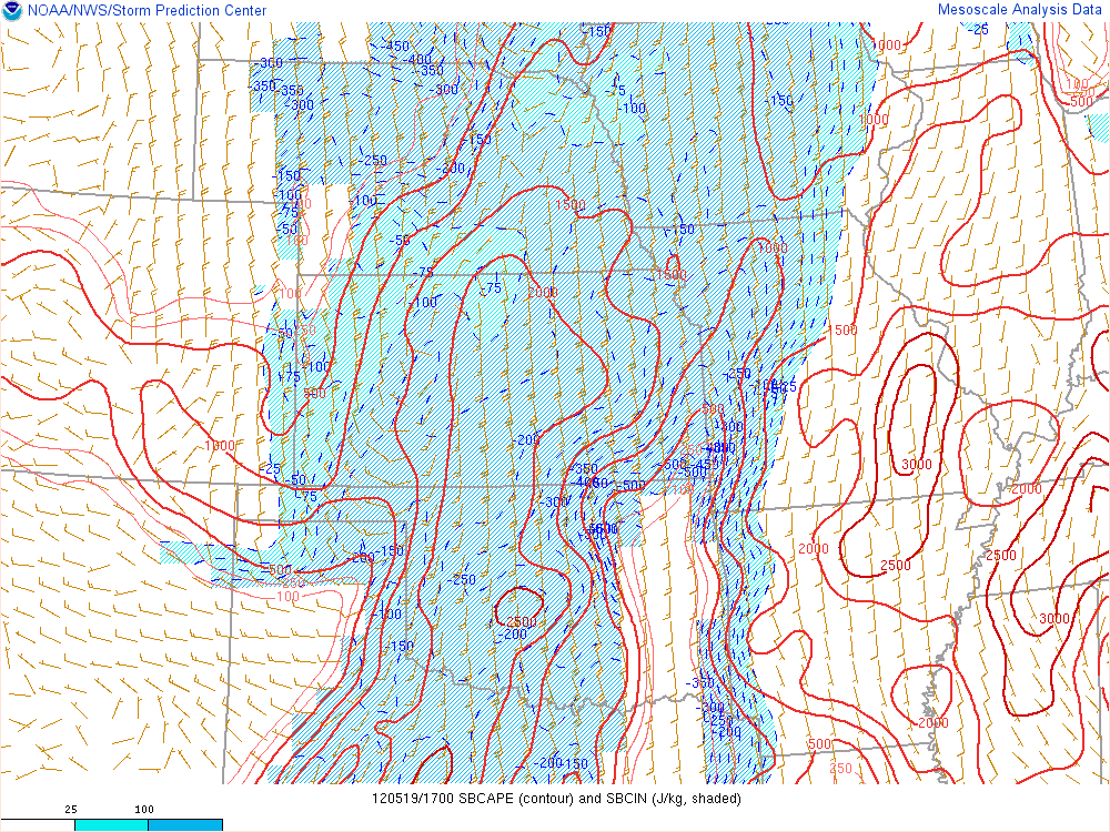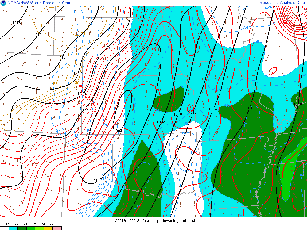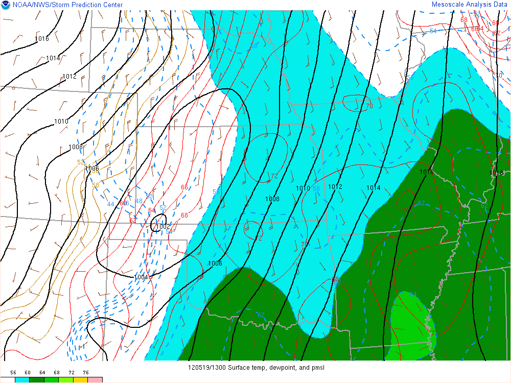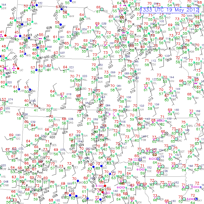 I started the day with fairly low expectations. The SPC had issued a slight risk from Iowa through southwest Oklahoma with 5% tornado risk for central Kansas into east central Nebraska. Moisture return from the Gulf was fairly modest but there was decent upper level flow. The expectation was for a quick transition to a linear storm mode along the front in Kansas. I was starting in Wichita, Kansas and had initially targeted either northwestern Oklahoma or north-central Kansas. I wasn't confident or enthusiastic about either target. The 12Z WRF showed convection in a north-south line (Nebraska through Kansas just east of Dodge City and into the western part of the Texas Panhandle) by 2200Z. The line slowly shifted eastward with a southern terminus about the level of Kiowa County in Kansas. If one was to completely believe the model, it also predicted an isolated supercell in EllisCounty, Oklahoma at 00Z. The 12Z HRRR showed an isolated cell 2130Z near Great Bend and a later isolated cell forming by 2330Z near Vici in northwestern Oklahoma. There was also an opportunity in south-central Nebraska. I also liked NAM that should more southerly 850 mb winds in southern Kansas rather than predicted veered winds farther north in to northcentral Kansas and Nebraska. I stuck with the more southern targets, and I headed west toward Pratt. I planned on checking more data, getting lunch and then deciding on a target. I could still blast north as necessary but I didn't see a need to go rushing off immediately.